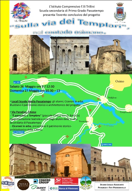 Dettagli Pubblicato: 17 Maggio 2018 La scuola secondaria di Primo Grado Passatempo presenta l'evento conclusivo del progetto "Sulla via dei Templari" Allegati: Locandina evento conclusivo[Progetto "Sulla via dei Templari"]1207 kB