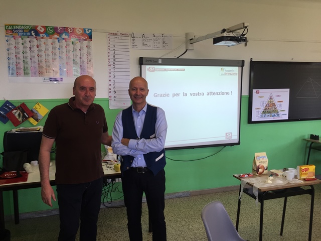 Mercoledì 6 giugno, le alunne e gli alunni delle classi prime della scuola secondaria di 1° grado “G. Leopardi” dell’I. C. “F.lli Trillini” hanno incontrato Luca Paparelli, formatore del Sì con te - CE.DI. Marche, per una lezione sulla catena alimentare e sulla lettura delle etichette dei prodotti. Le ragazze e i ragazzi hanno interagito con l’esperto mostrando entusiasmo e curiosità, con domande e osservazioni. Durante l’incontro, è intervenuto anche Andrea Andreoli, Direttore del Sì con te di Osimo, al quale va il ringraziamento più sentito da parte di noi tutti, per aver sostenuto il laboratorio di cucina realizzato ogni mercoledì con le classi prime da novembre a maggio: il Sì con te, infatti, ha fornito gratuitamente tutto il materiale e i prodotti necessari per permettere ai ragazzi di cucinare.