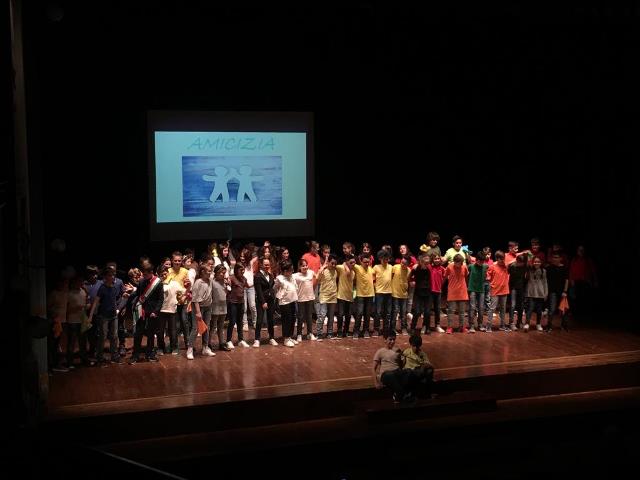 Lo spettacolo dal titolo “E se un giorno…che emozione!” è stato montato negli ultimi due incontri, assemblando in una storia i vari elementi e situazioni affrontati durante il laboratorio. La collaborazione e lo spirito di gruppo si sono potuti realizzare in pieno durante il lavoro di prove ed allestimento dello spettacolo. Questo è stato un momento importante per i ragazzi che ha segnato l’arrivo e la chiusura di un percorso pedagogico divertente ma anche impegnativo.
