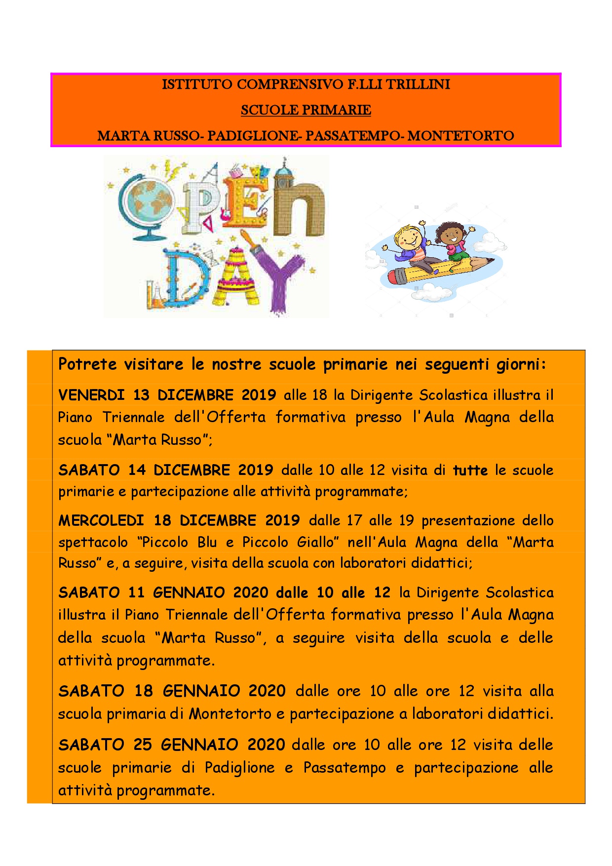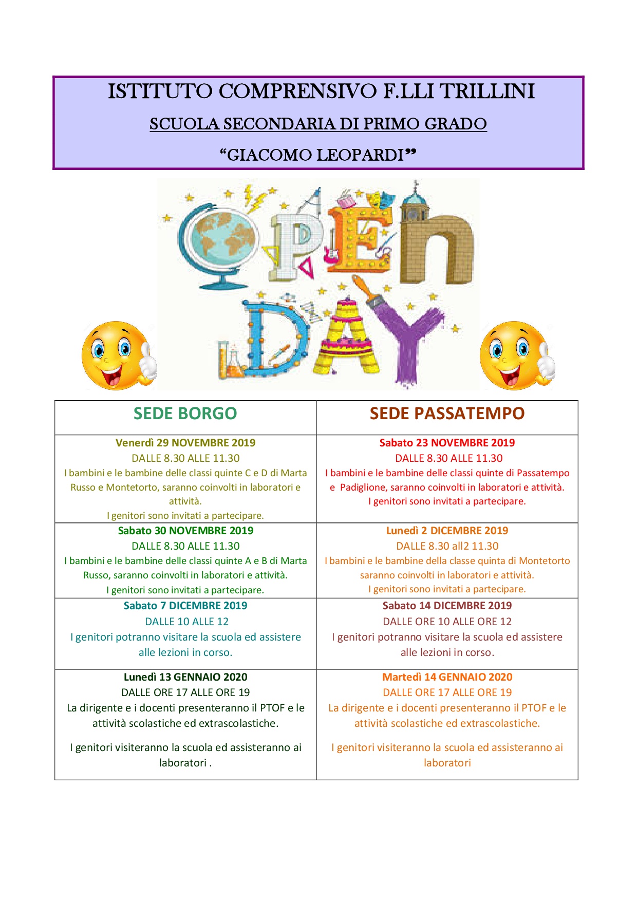 Potrete visitare le nostre scuole nelle giornate OPEN DAY